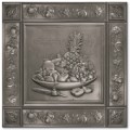 Fruit patterns are featured in copper tile, bronze
